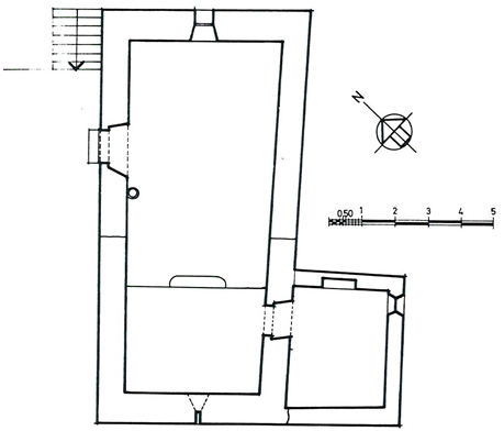 Detall del mur nord-occidental, amb la porta d’entrada.