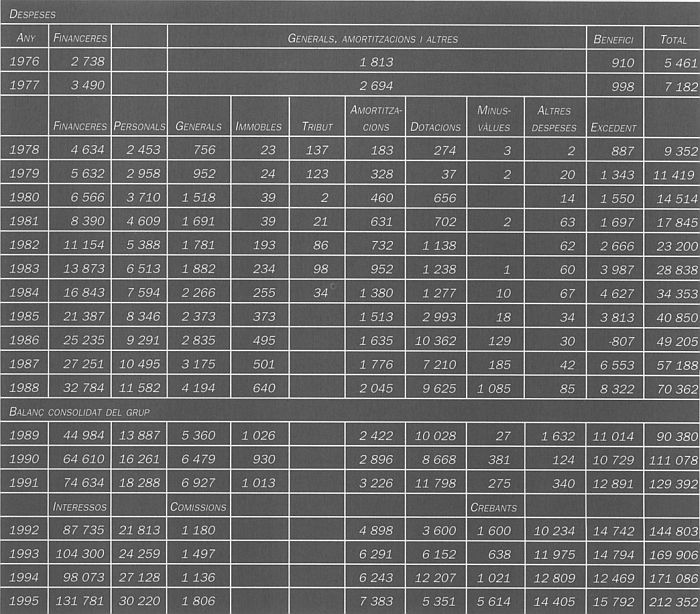 L’única inflexió es produeix el 1986 —un any molt negatiu per a totes les caixes catalanes—, quan l’exercici es tanca amb dèficit, després d’haver efectuat, amb càrrec als resultats de l’exercici, una dotació extraordinària de 8 481 milions de pessetes al fons de pensions del personal, seguint indicacions del Banc d’Espanya.