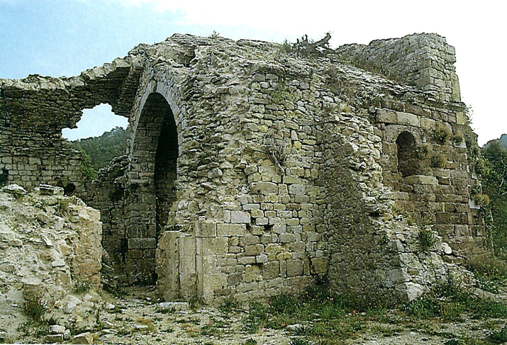 La part restant de l’església, el tram de llevant de la nau i l’absis, són construïts amb carreus grans i ben escairats, amb filades uniformes, a trencajunt. Respon a una construcció característica del romànic tardà, del segle XII o del XIII. Aquest tram de nau és la part menys malmesa, com hem indicat. Conserva la volta apuntada, feta amb rengles longitudinals de carreus ben escairats. És recolzada per dos ferms arcs torals apuntats, sobre pilars adossats de carreuada, i ben adovellats. Aquests dos arcs es troben separats menys de 2 m. Aquesta circumstància és deguda, segurament, al fet d’haver estat construïts al punt d’unió dels sectors de diferent època per tal de lligar ambdues parts.