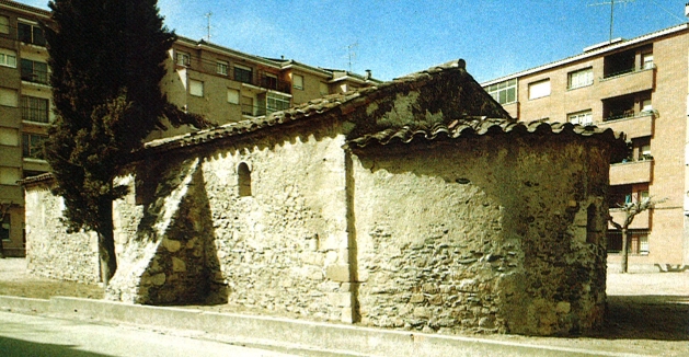 Antiga capella d’hospital als afores de la vila medieval, ara envoltada per modernes edificacions.