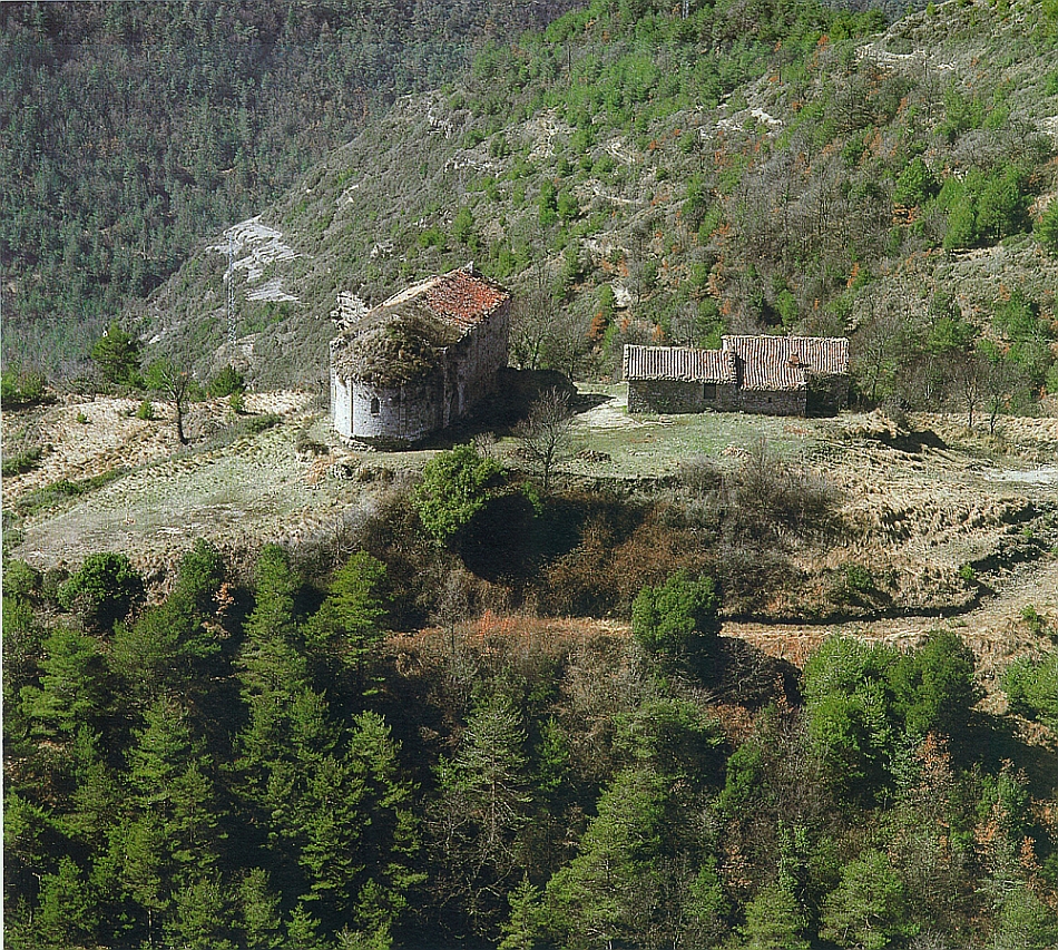 En la perfecció de les maneres rústiques pròpies del país, conserva la decoració amb arcades cegues i faixes llombardes a l’exterior de l’absis, sota un fris de dents de serra. L’absis es divideix en tres sectors amb una petita finestra en cadascun d’ells. Les arcades han estat tractades amb un minuciós sentit decoratiu; per contra, les finestres han estat cobertes amb uns arcs llisos en degradació. Aquestes finestres formen esqueixada vers l’interior i plecs cap a fora. De la coberta de l’absis no queda rastre, igual com la de la nau, que té ben poca cosa; l’herba cobreix voltes i cornises.