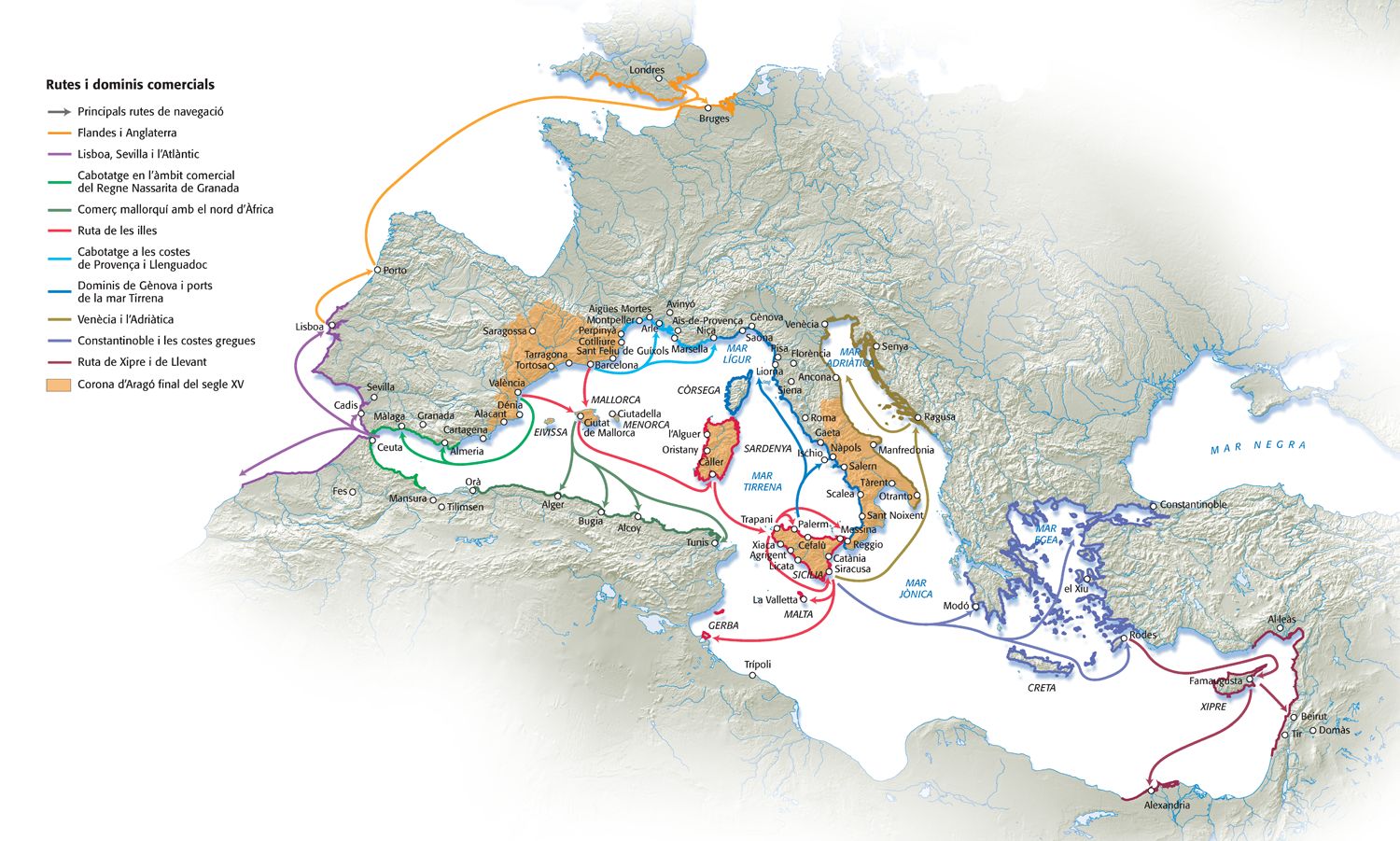 El gran dinamisme polític i cultural de la confederació catalanoaragonesa, i fins i tot la seva pròpia existència com a estat nació en formació, és inimaginable sense la gran expansió comercial per tota la Mediterrània. Les crisis de l’imperi català –les guerres, però també les epidèmies, la pesta, la plaga de la llagosta i, principalment, la fam– no s’haurien superat sense l’existència d’un potent comerç internacional de productes bàsics, que al mateix temps proporcionava també béns de luxe. Però, alhora, el desenvolupament pràctic del comerç de cabotatge i del gran comerç va rebre l’impacte negatiu d’aquestes crisis.