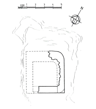 Planta de la torre del castell, amb la restitució del perímetre desaparegut.
