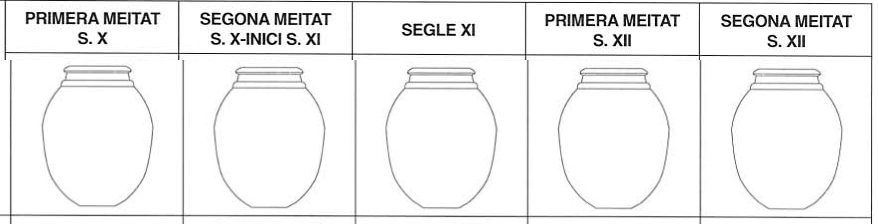Bàsicament les formes que caracteritzen aquest moment són safes, de dimensions més grans que en el període precedent, i sempre amb carena alta i repeus robustos; gerretes, molt semblants a les anteriors però de parets més gruixudes i pastes més rogenques, i olles de cocció reduïda, també amb un major gruix de pasta i amb vores molt més diferenciades amb llavis de secció triangular molt marcada. Continuen apareixent les cassoles, però ara sempre solen ser oxidades amb recobriment vitri interior. També continuen sense cap canvi substancial les formes d’emmagatzematge: gerres i tenalles, i les llànties de cassoleta. D’altra banda, la presència de ceràmica amb decoració sembla ser residual.
