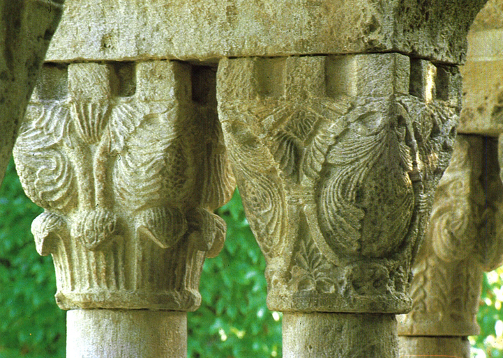 Un parell de capitells del claustre decorats amb tema vegetal.