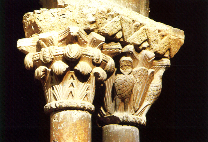 Queden per descriure els capitells adossats als pilars extrems de la galeria. A l’angle nord-oriental trobem un entrellaçat vegetal que dibuixa gairebé un sistema d’arcades i una escena de lluita entre ocells i felins, molt deformada per l’absència de la totalitat dels cossos dels animals. A l’angle nordoriental, trobem un tema també d’entrellaçat vegetal i un capitell de gran qualitat amb una sèrie de paons posats sobre el primer nivell de fulles, mentre que el segon nivell s’aixeca fins a la part més alta del capitell.