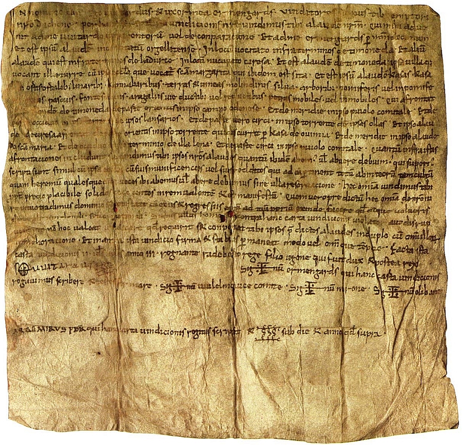 Document d’una venda de dos alous feta a Lladurs el dia 12 d’abril de l’any 999. Còpia del segle XI conservada a l’Arxiu Diocesà de Solsona. Hom en trobarà la transcripció i la traducció a Venda de dos alous a Lladurs).