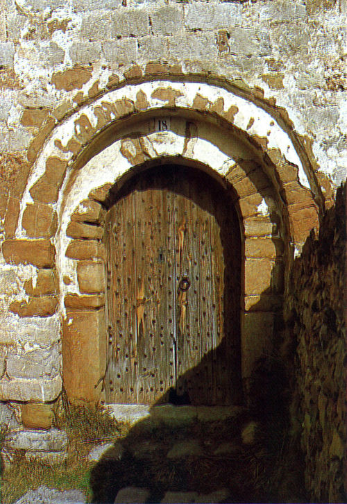 Un dels elements més interessants és la porta d’entrada, oberta al mur de migjorn, la qual constitueix un exemplar auster, però bonic. Ha estat constituïda per un conjunt de pedres de mides desiguals, però col·locades simètricament, quant a mida, per tal de formar l’obertura del portal. Aquest es cobreix amb un doble arc en degradació de mig punt, fet amb unes boniques dovelles. L’arc exterior se situa en un nivell més baix que la superfície del mur. El conjunt és subratllat per una petita arquivolta, feta amb blocs petits, llargs i estrets, els extrems de la qual arrenquen d’una imposta per banda.