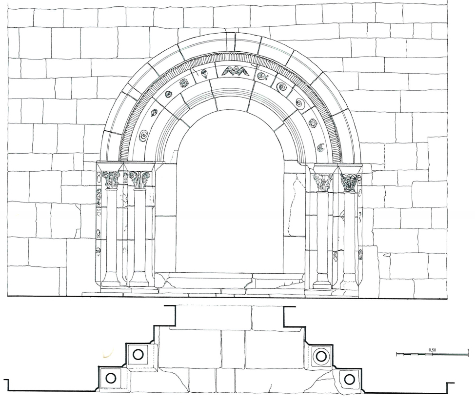 Finestra de l’absis decorada amb relleus escultòrics.