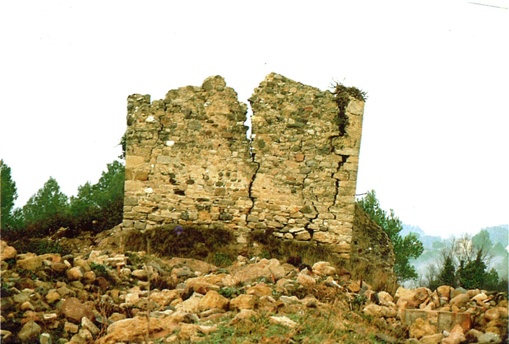 Vista de l’estat de ruïna avançada d’aquest petit temple.