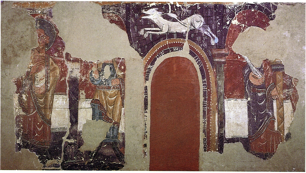 Fragment de pintura mural que ocupava l’hemicicle absidal, avui conservat al Museu Diocesà d’Urgell.