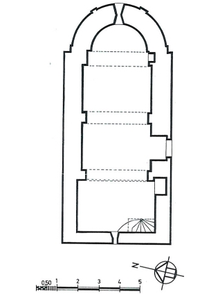 Planta de la capella, ampliada amb un cos d’edificació a la banda de ponent.