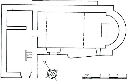 Planta de l’església, adossada a una construcció tardana per la banda de ponent.