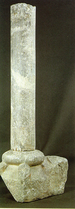 Aquestes dues raons poden justificar la hipòtesi que la zona sense decoració, devia anar integrada dins un mur i la base i la columna adossats a la paret.