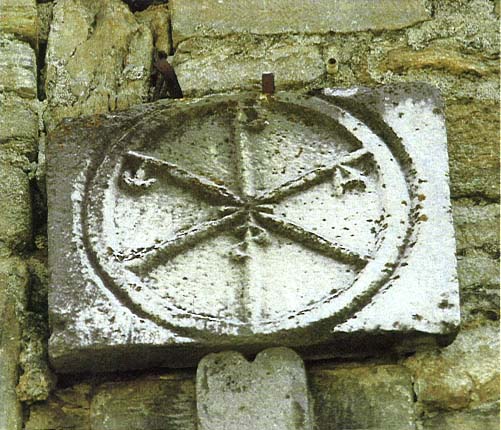 Crismó situat damunt l’actual porta d’entrada a l’església, a la façana de ponent.