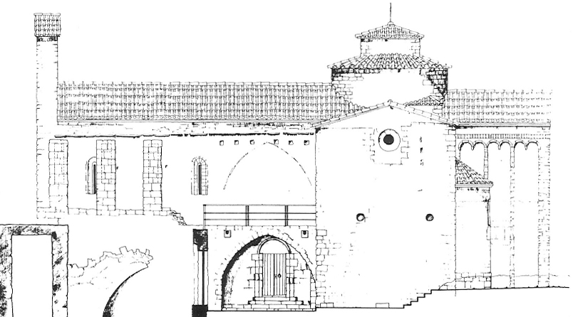 Capçalera de llevant amb l’absis major carrat i una absidiola lateral reconstruïda sobre les seves bases.