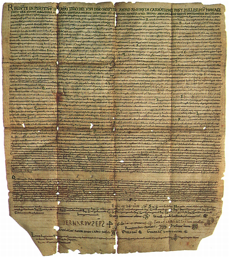Lator legis ac iuris Ermengaudus hanc a summo usque ad deorsum scripsit dotem a prephatis principibus iussus cum litteris suprapositis, peractis. XXIIIIº. versibus et in epylogo solitum hoc (s. man.) signum impressit libens ac devotus, in anno et mense ac die quo superius.