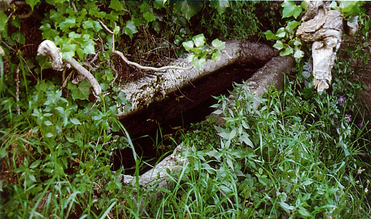 Anant del mas a l’església de Sant Climent, passant per la banda de baix, veurem al costat de migjorn d’un mur, força proper a la casa, un sarcòfag exempt de pedra. (JBH)