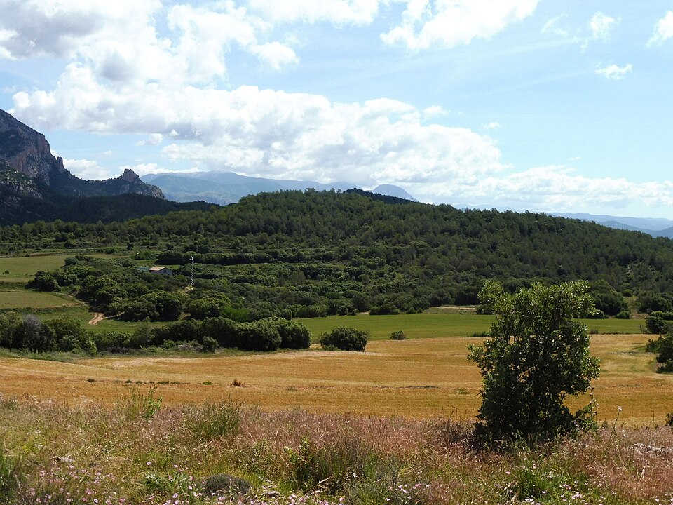Camps de Cortiuda (Peramola), amb el tossal al fons