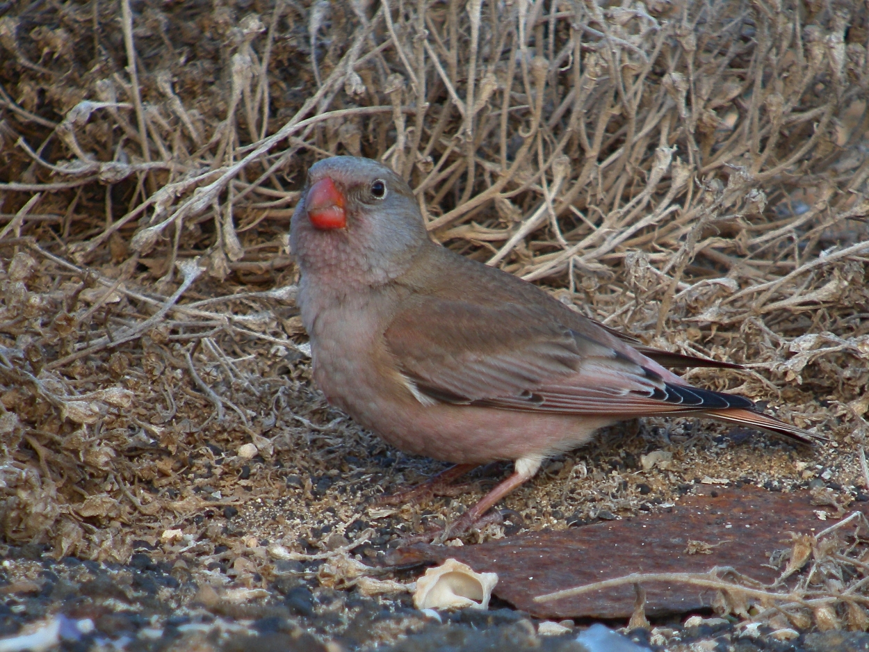 Ocell de l’ordre dels passeriformes, de la família dels fringíl·lids, de 14 cm, que és de color bru grisenc, amb el carpó, les ales, la cara i les parts inferiors tenyits de rosaci.