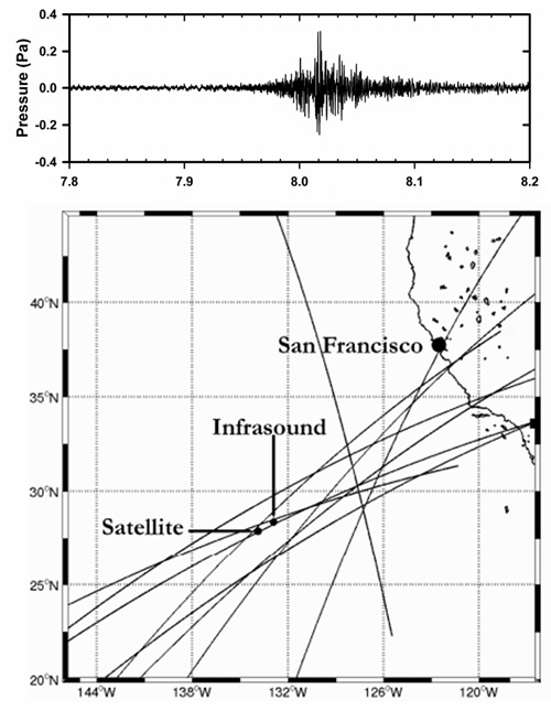 Localització d’un meteor i un dels senyals infrasònics que ho ha permès (Brown et al., 2002)