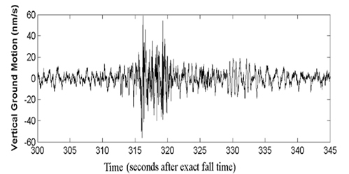 Per exemple, a la figura següent veiem un registre sísmic i un infrasònic, ambdós corresponents a l’entrada a l’atmosfera del transbordador Atlantis en la seva tornada a la Terra. En aquest cas, l’objecte era conegut i esperat, cosa que serveix per comparar el que sabem, amb el que podem mesurar dels enregistraments sísmics i infrasònics.