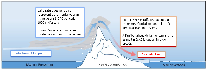 Efecte fogony a l’Antàrtida. Adaptat de @aemet_antartida