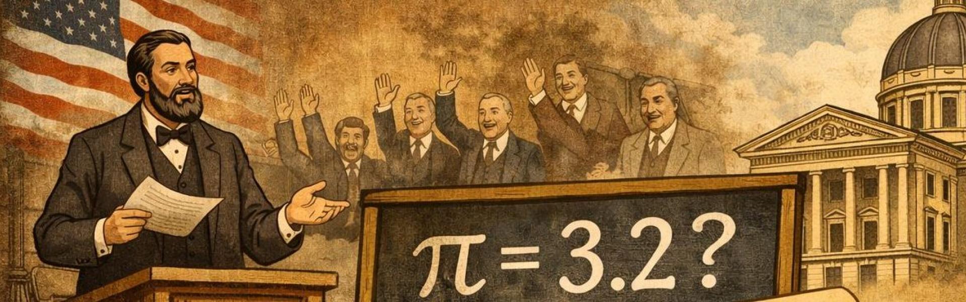 Doncs bé, fa més d’un segle, l’Assemblea General d’Indiana va discutir i va aprovar, per 67 vots a favor contra zero, una norma demostrant la quadratura del cercle, concretament que pi seria exactament 3,2. Com que sembla que cap dels representants tenia coneixements de matemàtiques ningú no va apreciar el disbarat. La decisió es va prendre després de tres sessions, i la nova norma va ser publicada i es va traslladar al senat per a la seva aprovació definitiva.