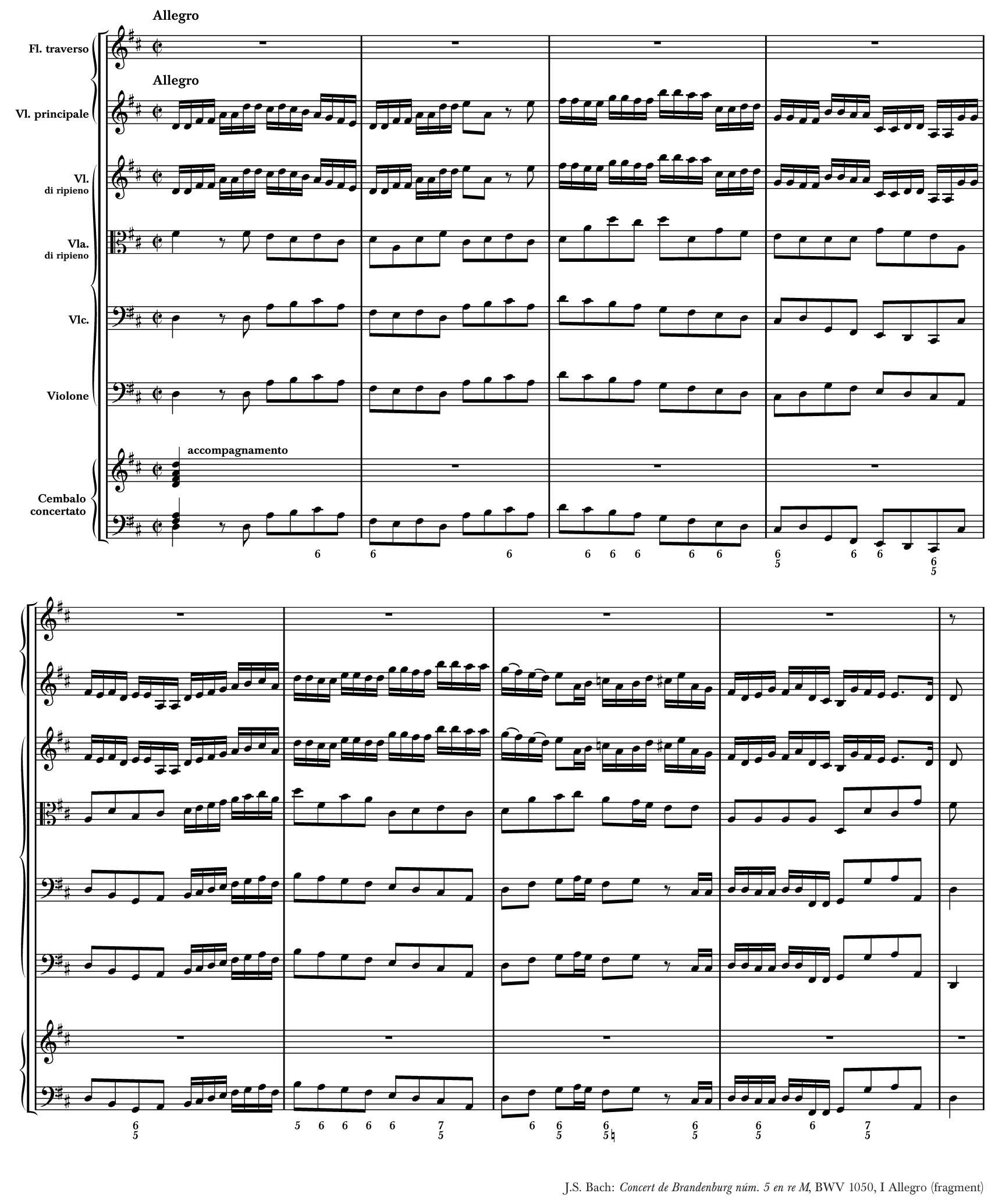 Exemple 1 - J.S. Bach: Concert de Brandenburg núm. 5 en re M, BWV 1050, I Allegro (fragment)