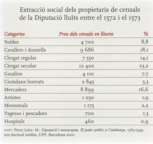 Extracció social dels propietaris de censals de la Diputació lluïts entre el 1572 i el 1573.