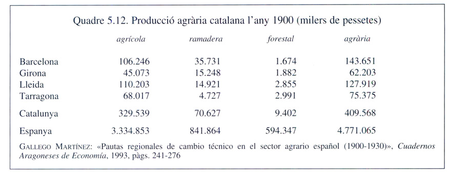Quadre 5.9. Comparació entre la composició del consum de les economies domèstiques del 1868 i el 1900.