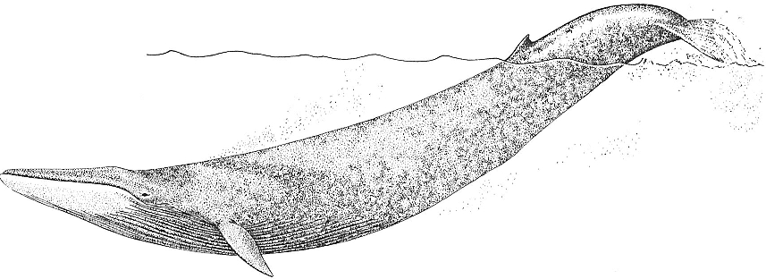 De tots els éssers vivents, la balena blava és el més gran; s’han arribat a capturar exemplars de pesos propers als 150 000 kg. A l’hemisferi S, aquesta espècie assoleix una mida màxima d’uns 31 m, però a les aigües boreals no sol sobrepassar els 26 m.