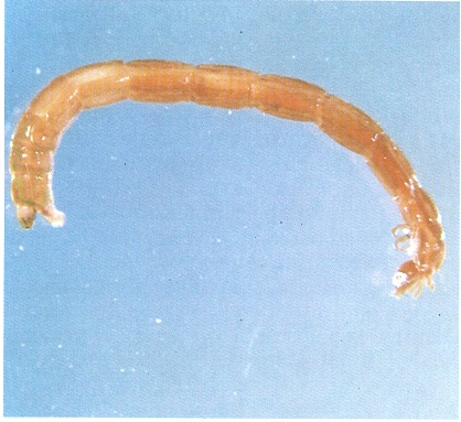 Cuc de sang (larva de Chironomus), obtingut per mitjà d’una draga en un mostratge fet al llac de Banyoles, a 21 m de fondària. L’intens color vermell es deu al pigment respiratori que els habilita per a viure entre els sediments dels llacs, amb poc oxigen.