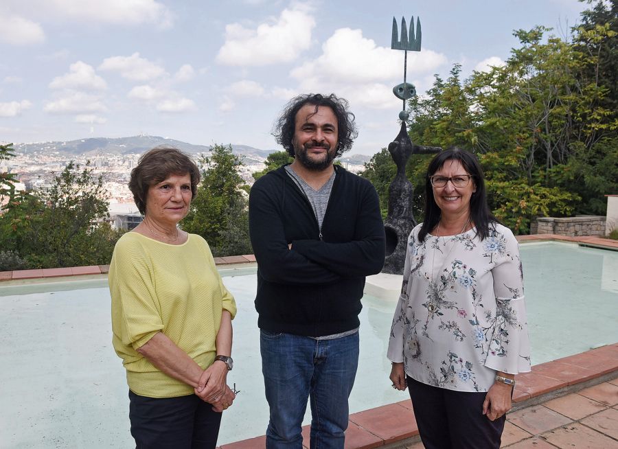 D’esquerra a dreta, Rosa Maria Malet, directora de la Fundació Joan Miró; l’artista guardonat amb el premi Joan Miró 2017, Kader Attia, i Elisa Durán, directora general adjunta de la Fundació “la Caixa”