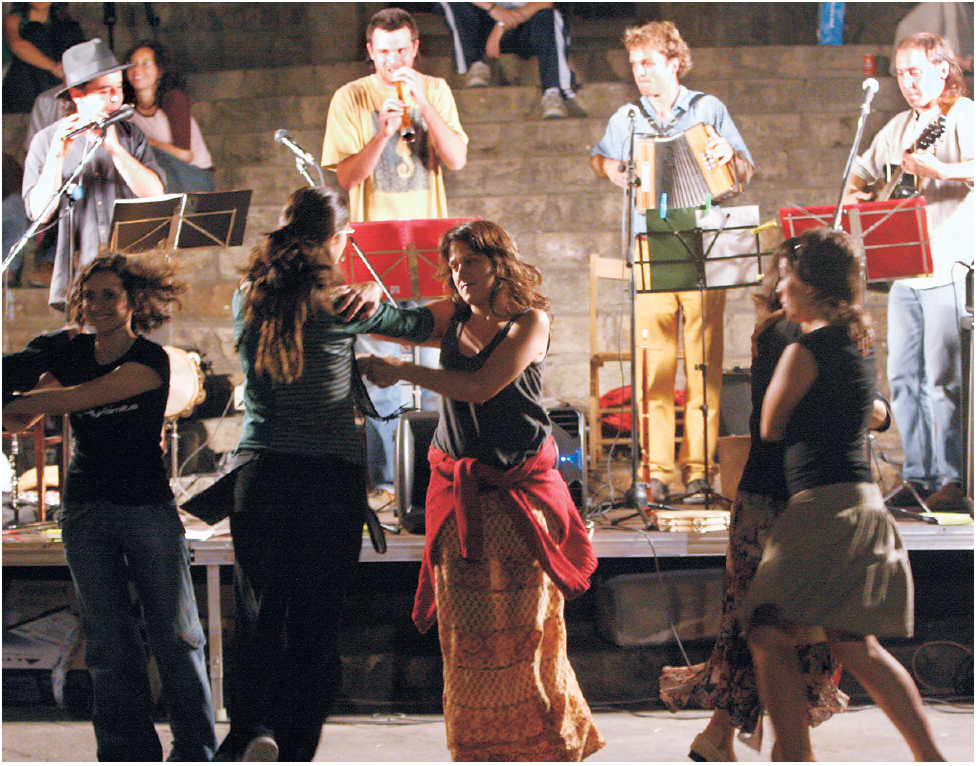 Danses a la plaça del Rei de Barcelona. Iniciades els anys setanta del s. XX, aquestes sessions fan possible compartir danses d’arreu del món.