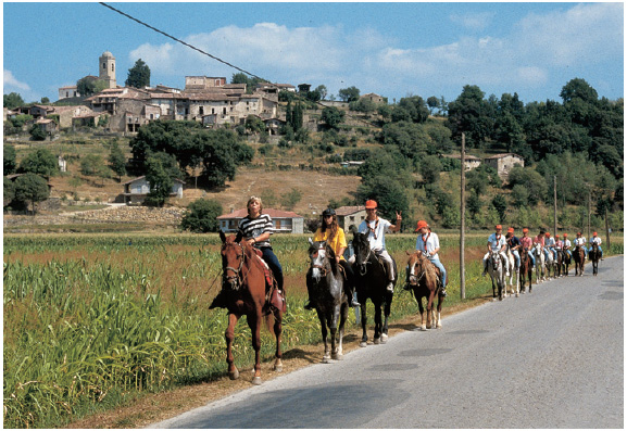 En l’actualitat, es presenten com a lleure accions considerades tradicionalment del món laboral, com és el cas de muntar a cavall, activitat que a la imatge té lloc a la Vall d’en Bas.