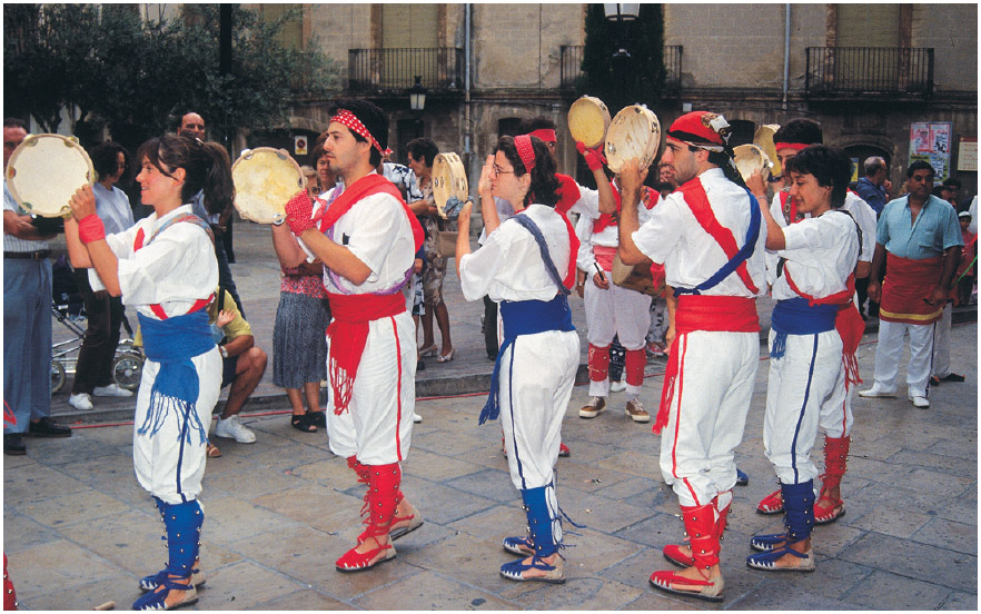 La societat catalana, a diferència de les societats d’altres cultures, separa de manera molt marcada els músics (aquells a qui es delega l’activitat especialitzada de tocar instruments) dels no músics, fins al punt de deixar a aquests darrers poc espai social per a l’activitat musical. En la festa, les possibilitats de participació dels no músics en la creació de l’espai i del ritual sonors són molt més grans que en altres ocasions, però no per això perden importància els músics, de tal manera que en molts pobles la figura del músic és sinònim de festa, i no es pot concebre cap moment del ritual sense que hi sigui present (per exemple, en alguns pobles de l’Horta valenciana han de ser presents de bon matí mentre pentinen la fallera major!). Antigament –des de fa dos segles com a mínim–, el músic actuava com a fil conductor de tots els actes festius, en un model de festa major que encara és vigent en alguns pobles, on els actes i els espais –religosos i profans, interiors i exteriors– estan connectats per la presència de la mateixa orquestra o cobla de músics, que van canviant d’instruments, de repertori i de vestits, però no canvien les persones: cercavila o passant matinal, missa cantada a l’església, sardanes abans de dinar, concert de tarda, sardanes al capvespre i ball a la nit (amb dues parts més o menys destinades a generacions diferents).